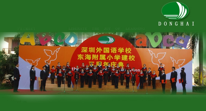 深圳外国语学校东海附属小学创办于2000年,坐落于深圳市香蜜湖西侧,是一所环境优美、设施齐备、师资精良、特色鲜明的现代化国有民办小学。学校由广东省一级学校、全国外国语学校工作研究会理事会学校、全国现代教育实验学校——深圳外国语学校独立承办,是深圳外国语学校的小学部。